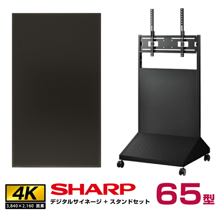 シャープ 4K対応デジタルサイネージ 65型 PN-HW652 垂直型スタンドセット ハヤミ工産 XS-78 SHARP