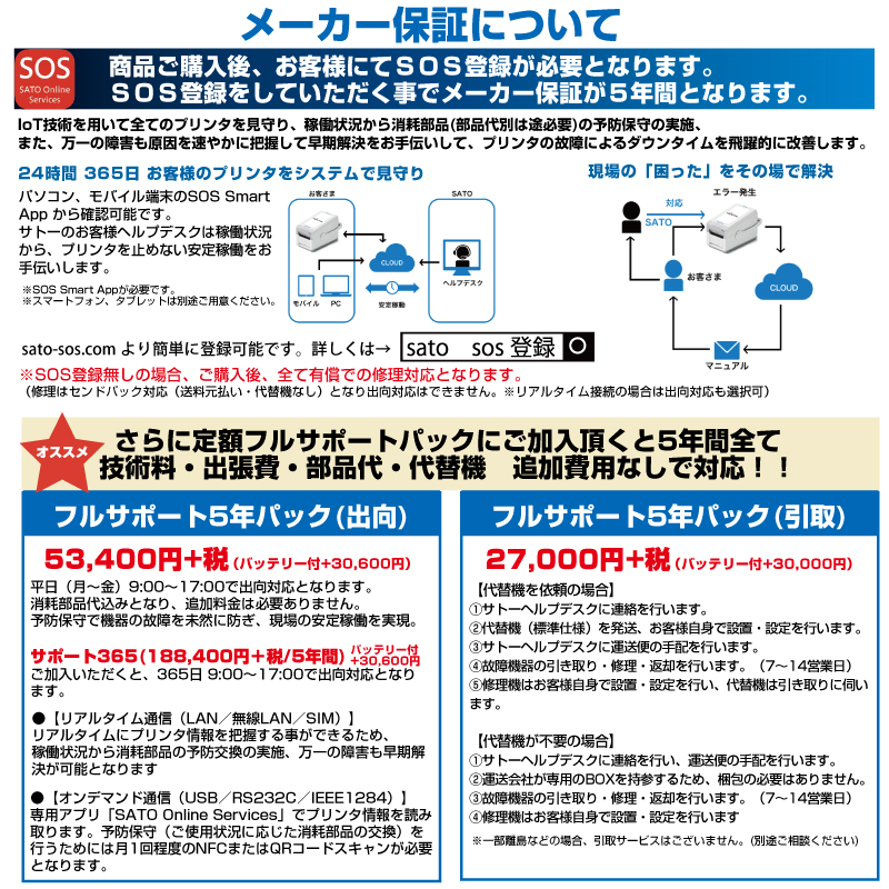 SOS登録で5年保証(消耗部品除く)