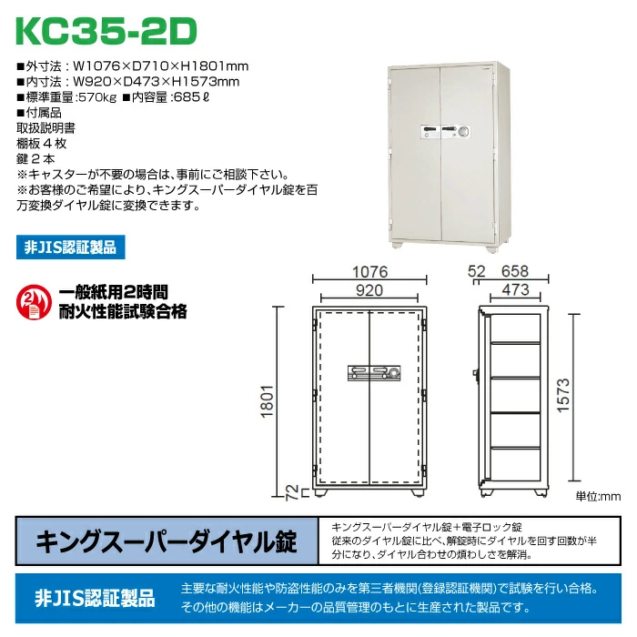 日本アイエスケイ ダイヤル式 大型耐火金庫|KC35-2D