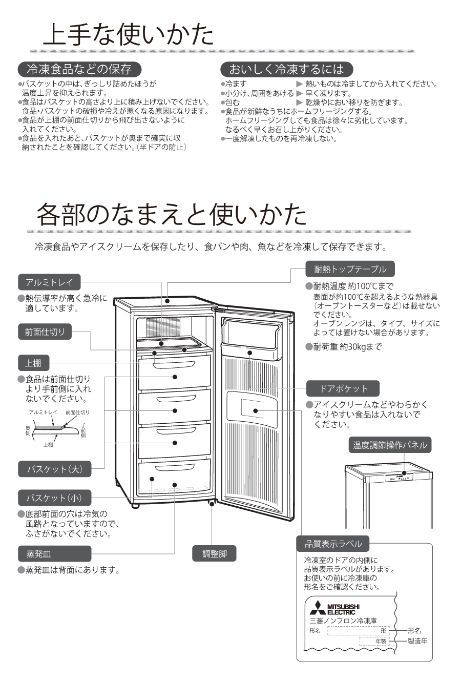 三菱電機 冷凍庫 ホームフリーザー Uシリーズ 右片開き 121L ホワイト MF-U12K-W