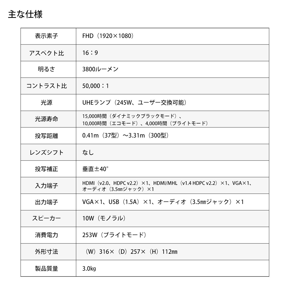 Optoma オプトマ 3800ルーメン 短焦点 フルHD DLPプロジェクター GT1080HDR