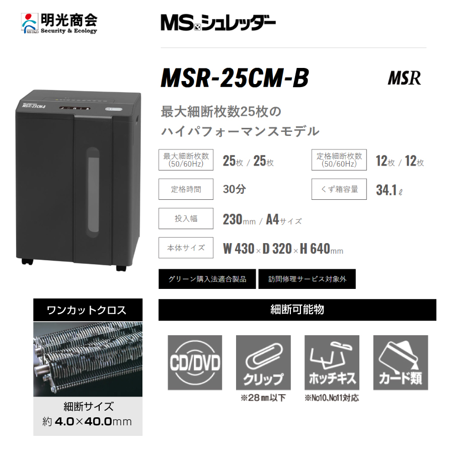 |細断寸法:約4×10(mm) |明光商会 MSシュレッダー MSR-25CM-B (限定色ブラック) オフィスパーソナル小型タイプ