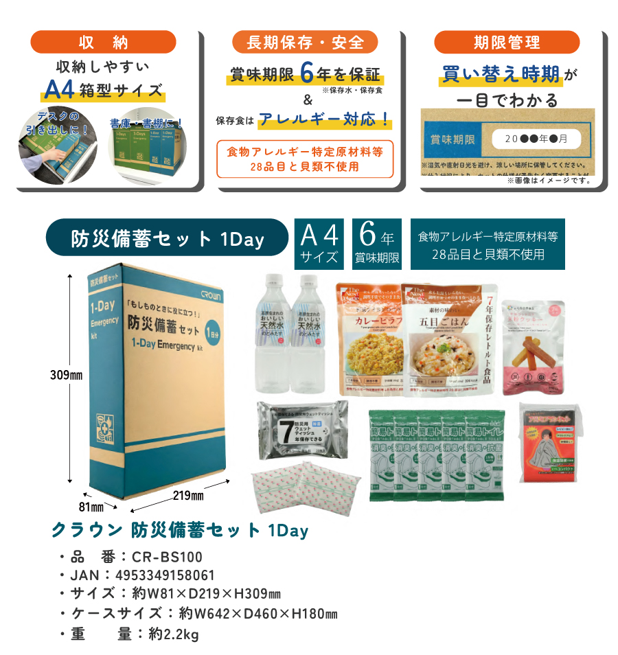【まとめ買い】クラウン CROWN 防災備蓄セット (1DAY) 8個セット CR-BS100