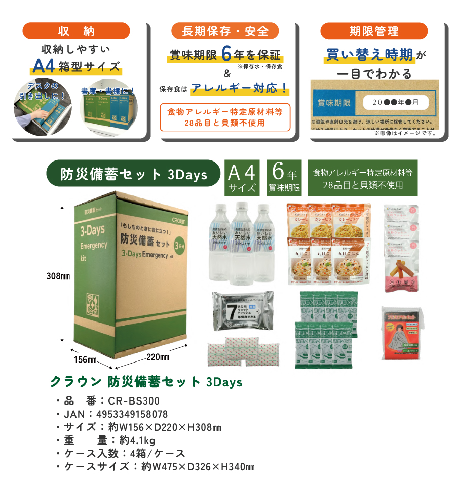 【まとめ買い】クラウン CROWN 防災備蓄セット (3DAY) 4個セット CR-BS300