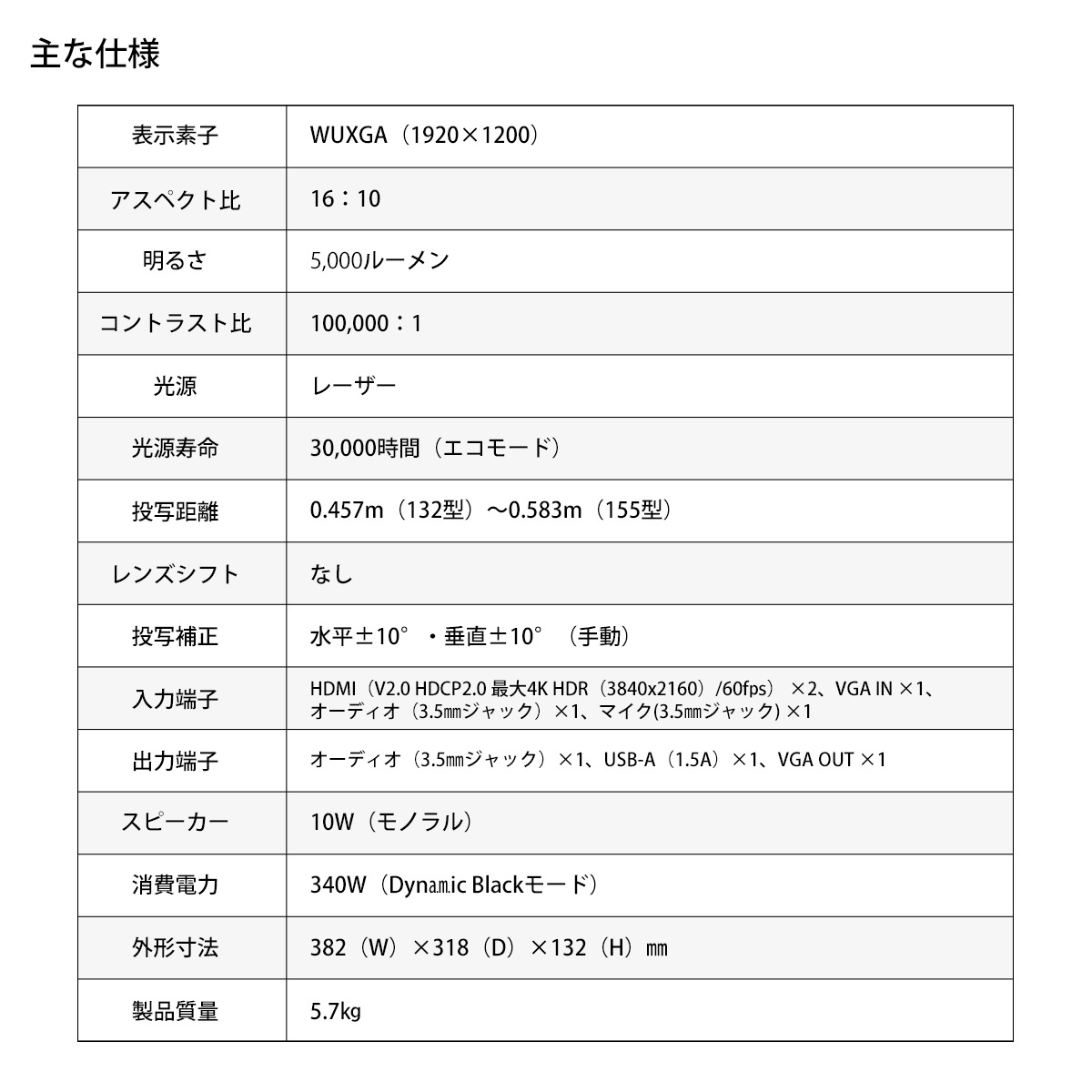 Optoma オプトマ 5000ルーメン 超短焦点 WUXGA レーザーDLPプロジェクター ZU500UST