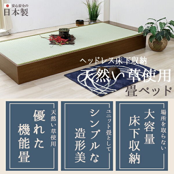 友澤木工 TOMOZAWA 日本製 ヘッドレス収納畳ベッド セミシングル ウレタン入りクッション畳付 (D62-SS-URETHANE)