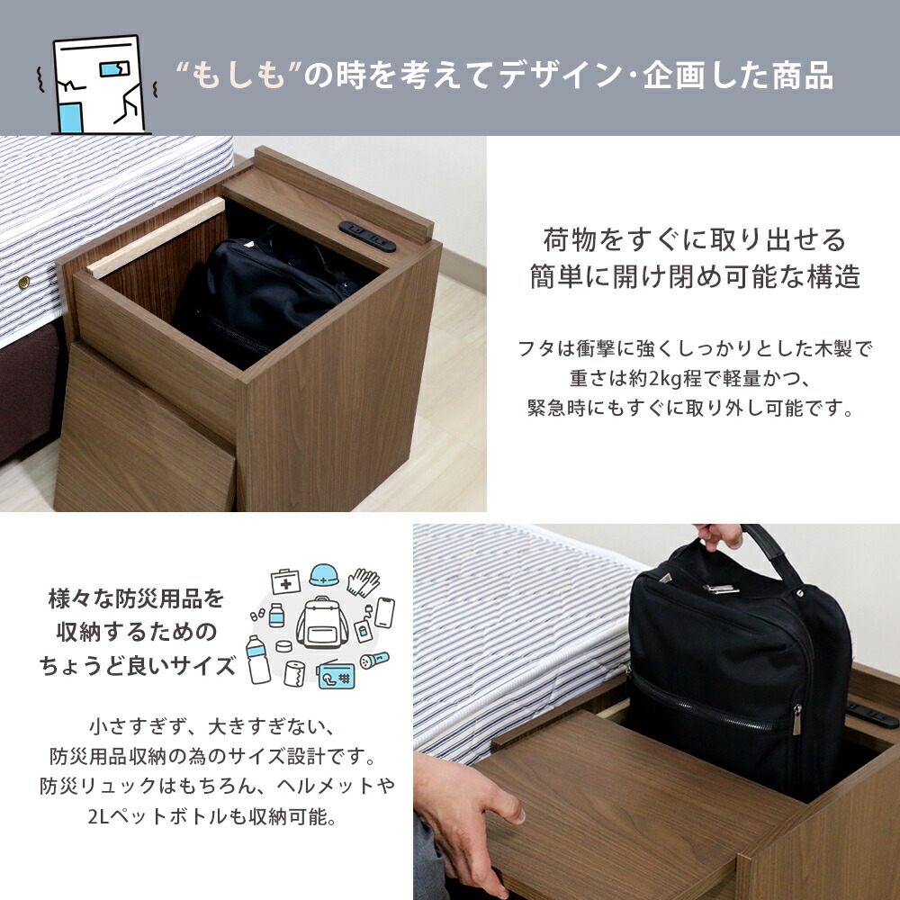 友澤木工 TOMOZAWA 日本製 防災用品 収納 ナイトテーブル (CAB-03)