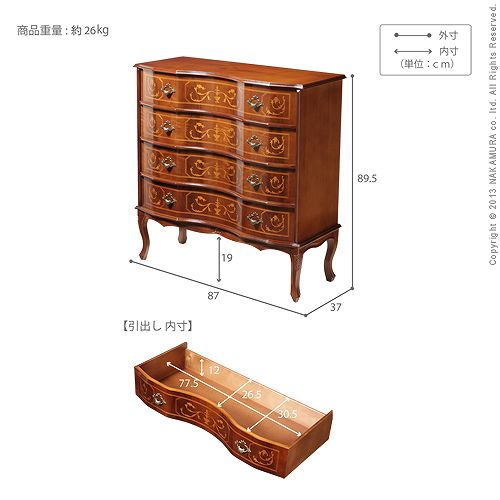 イタリア 家具 ヨーロピアン ヴェローナクラシック 猫脚4段チェスト W87cm (42200002)|ナカムラ|