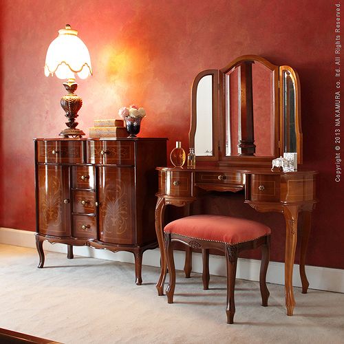イタリア 家具 ヨーロピアン ヴェローナクラシック 猫脚象嵌ドレッサー&スツール (42200014)|ナカムラ|