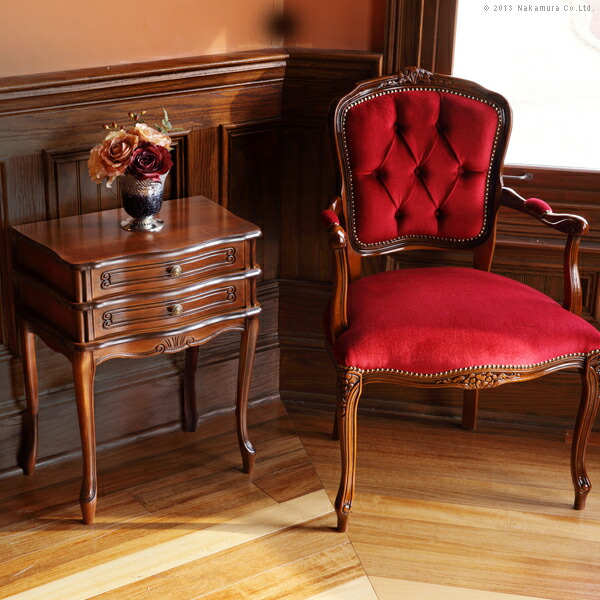 イタリア 家具 ヨーロピアン ヴェローナクラシック アームチェア-モケットレッド(1人掛) (42200046)|ナカムラ|