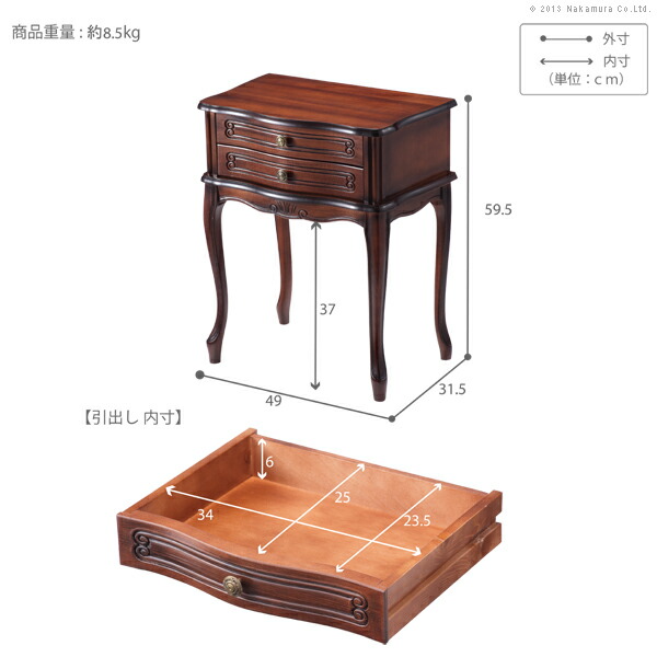 イタリア 家具 ヨーロピアン ヴェローナクラシック 丸脚3段オープンチェスト W51cm (42200018)|ナカムラ|