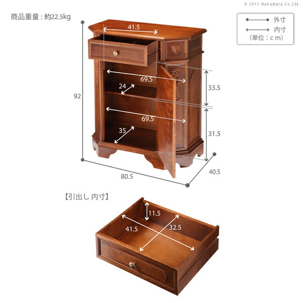 イタリア 家具 ヨーロピアン ヴェローナクラシック サイドボード W80cm (42200022)|ナカムラ|