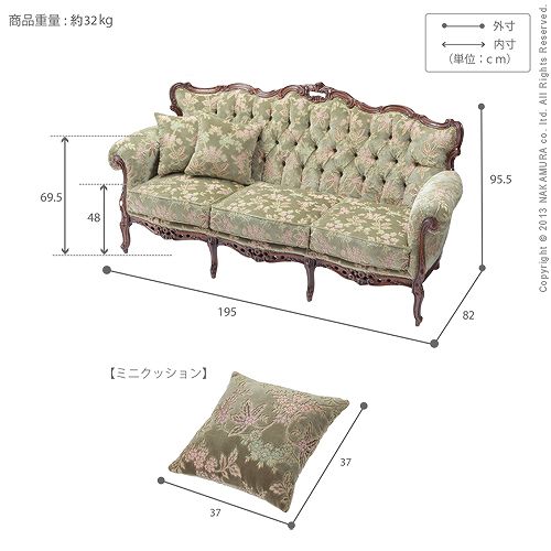 イタリア 家具 ヨーロピアン ヴェローナクラシック ソファ-金華山(3人掛) (42200042)|ナカムラ|