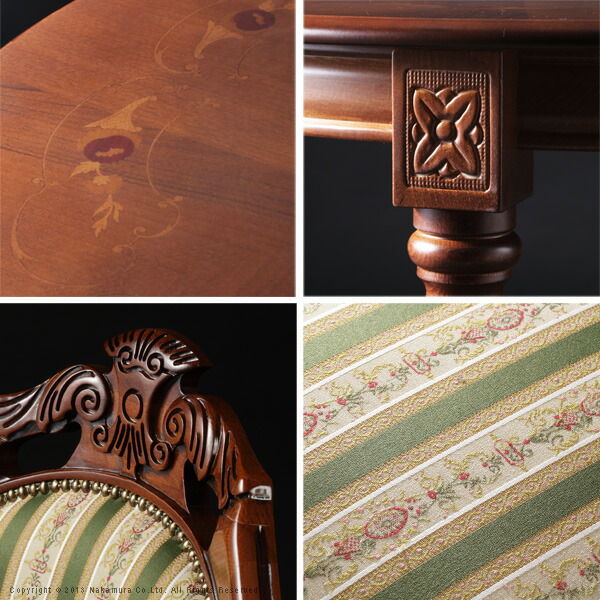 イタリア 家具 ヨーロピアン ヴェローナクラシック ダイニング5点セット:テーブル幅110cm+チェア-グリーン4脚 (42200132)|ナカムラ|