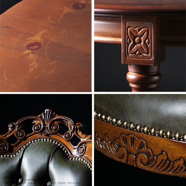 イタリア 家具 ヨーロピアン ヴェローナクラシック ダイニング3点セット:テーブル幅90cm+チェア-革張り2脚 (42200141)|ナカムラ|