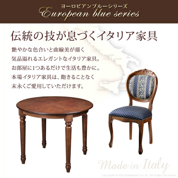イタリア 家具 ヨーロピアン ヴェローナクラシック ダイニング3点セット:テーブル幅90cm+チェア-ヨーロピアンブルー2脚 (42200163)|ナカムラ|