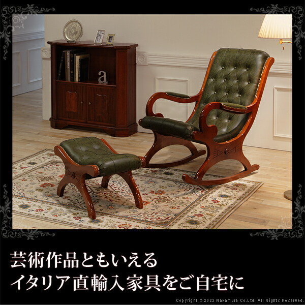 イタリア 家具 ヨーロピアン ヴェローナクラシック ロッキングチェア&オットマン-革張り (42200165)|ナカムラ|