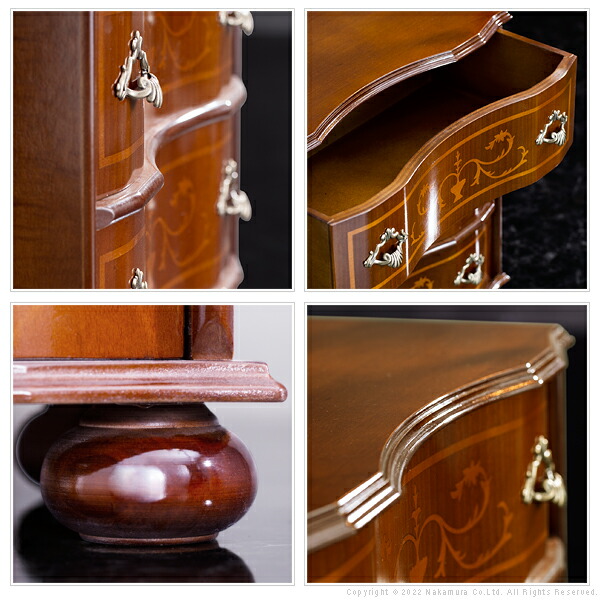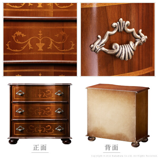 イタリア 家具 ヨーロピアン ヴェローナクラシック 丸脚3段チェスト W58cm (42200168)|ナカムラ|