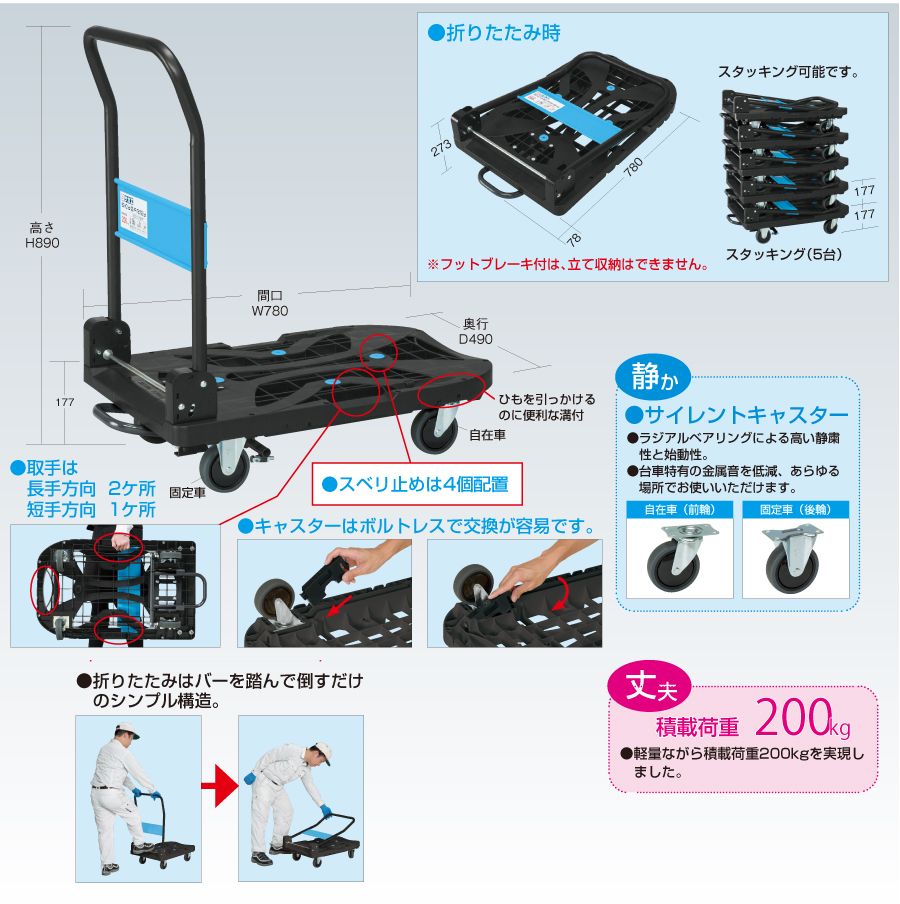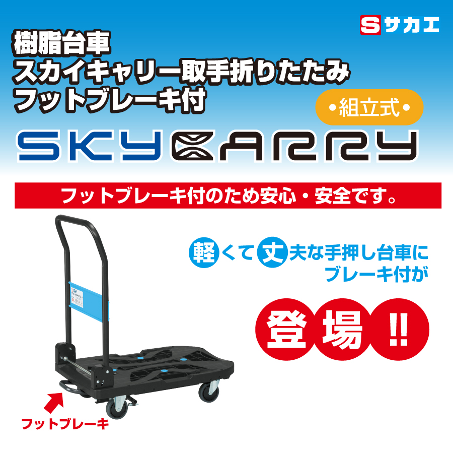 サカエ SAKAE 樹脂台車スカイキャリー取手折りたたみフットブレーキ付 SKC780BRBK