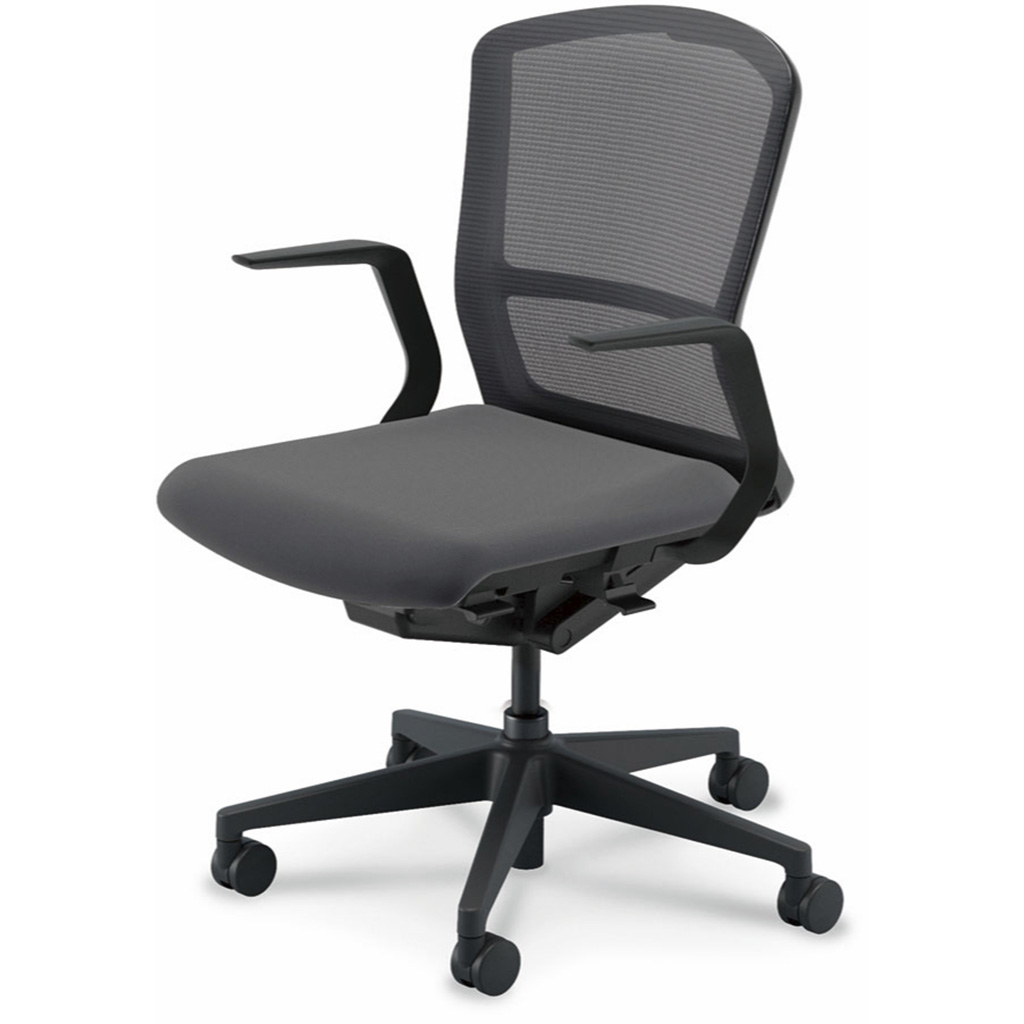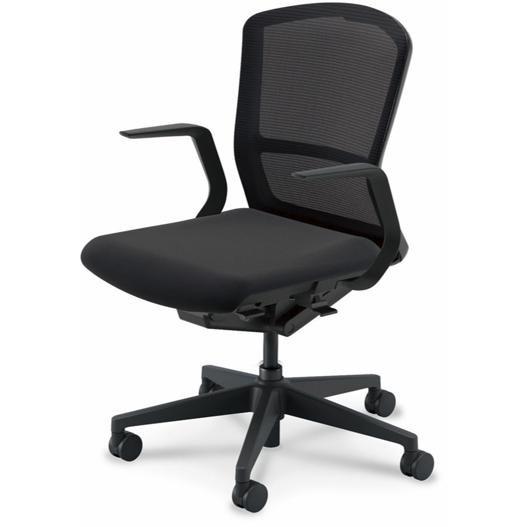 内田洋行/UCHIDA オフィスチェア Elfie(エルフィ) ミドルバック メッシュバック ブラックフレームxブラック脚・L型肘・ナイロンキャスター EA-311M-BBLA-PA