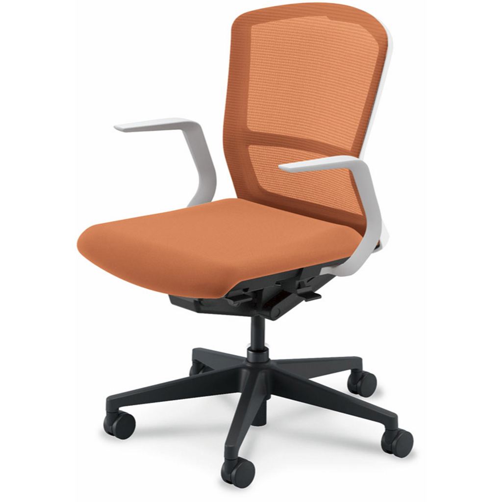 内田洋行/UCHIDA オフィスチェア Elfie(エルフィ) ミドルバック メッシュバック ホワイトフレームxブラック脚・L型肘・ナイロンキャスター EA-311M-WBLA-PA