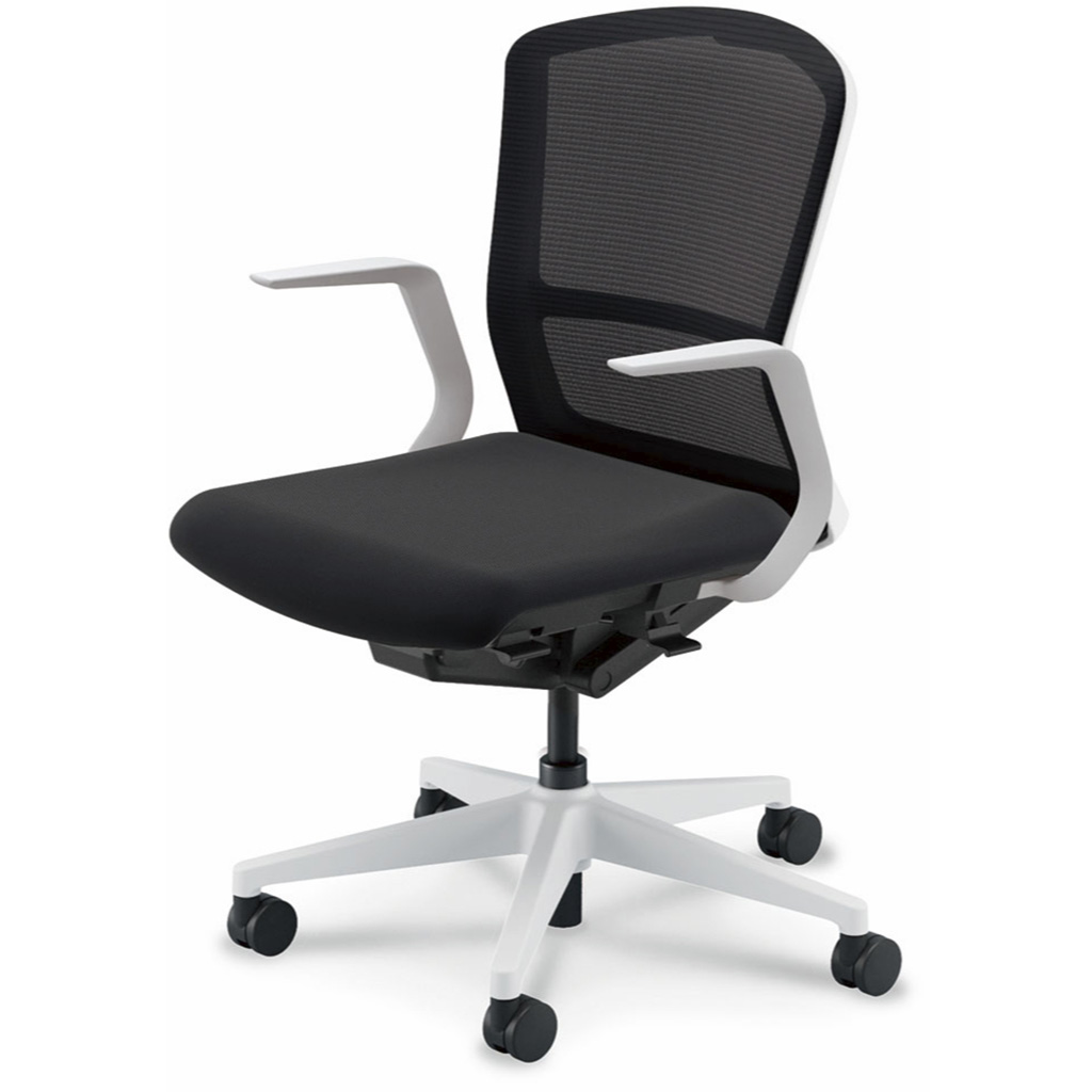 内田洋行/UCHIDA オフィスチェア Elfie(エルフィ) ミドルバック メッシュバック ホワイトフレームxホワイト脚・L型肘・ナイロンキャスター EA-311M-WWLA-PA