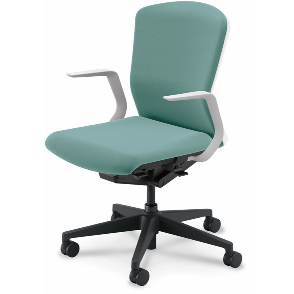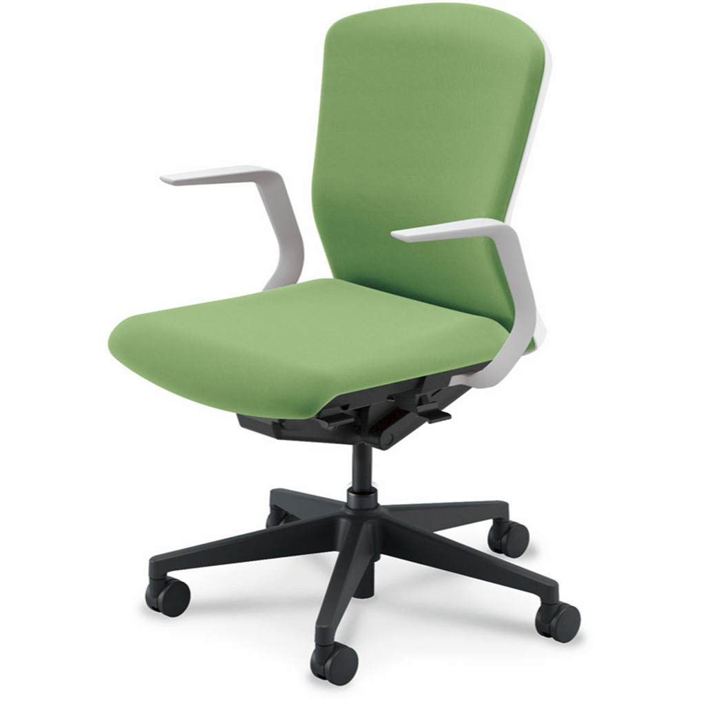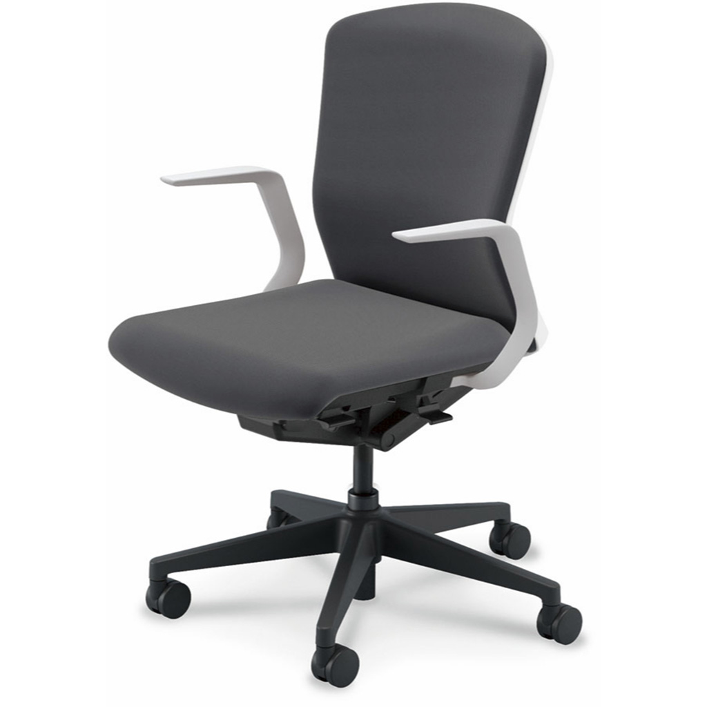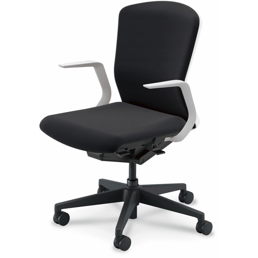 内田洋行/UCHIDA オフィスチェア Elfie(エルフィ) ミドルバック 樹脂カバーバック ホワイトフレームxブラック脚・L型肘・ナイロンキャスター EA-311P-WBLA-PA