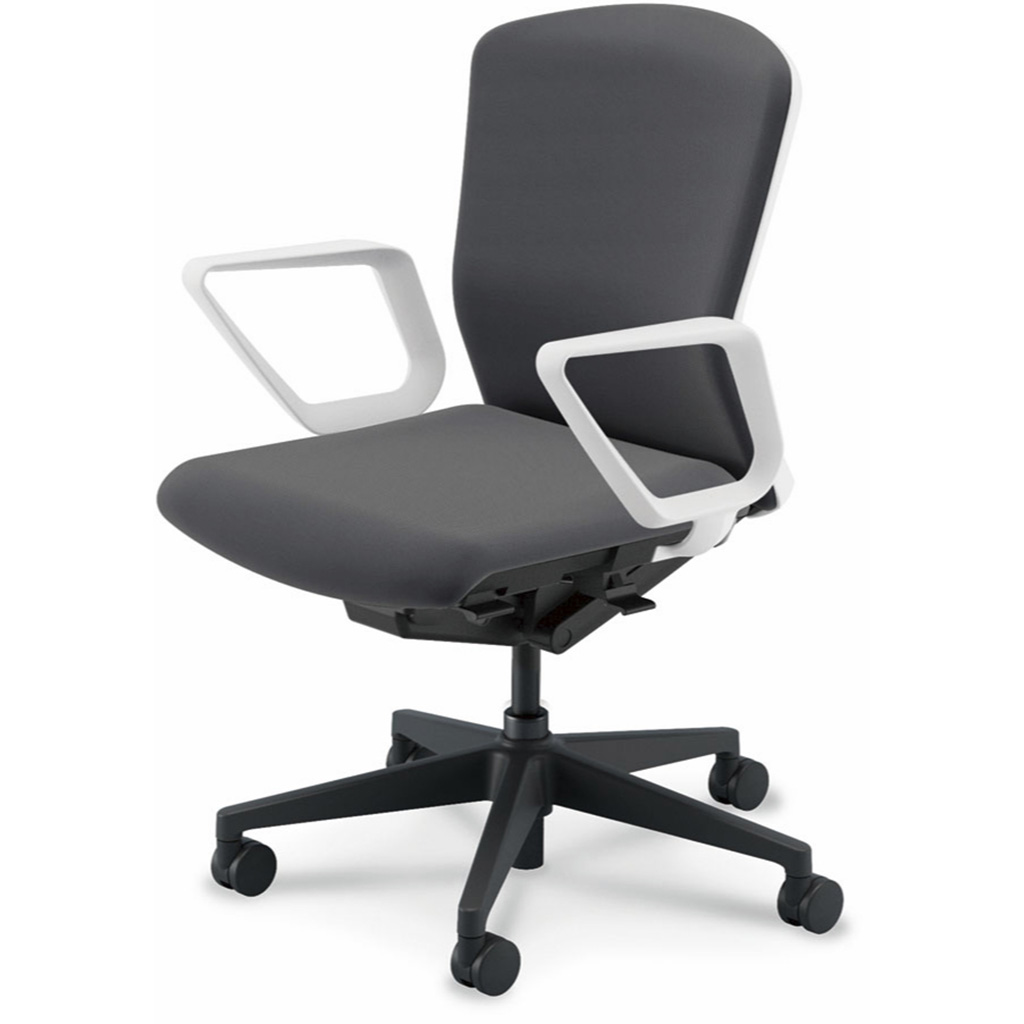 内田洋行/UCHIDA オフィスチェア Elfie(エルフィ) ミドルバック クロスバック ホワイトフレームxブラック脚・リング肘・ナイロンキャスター EA-331C-WBRA-PA