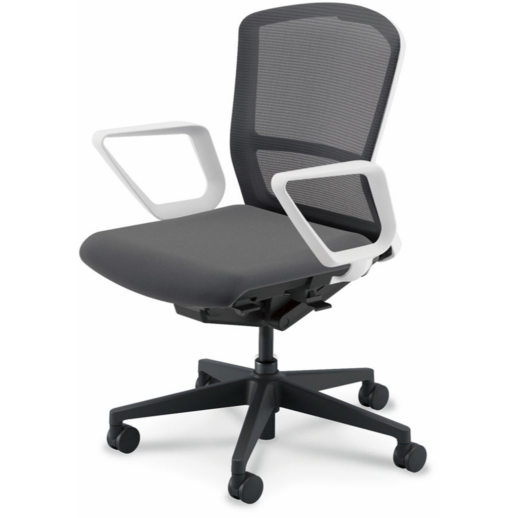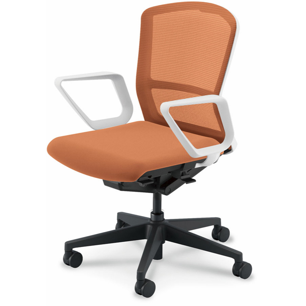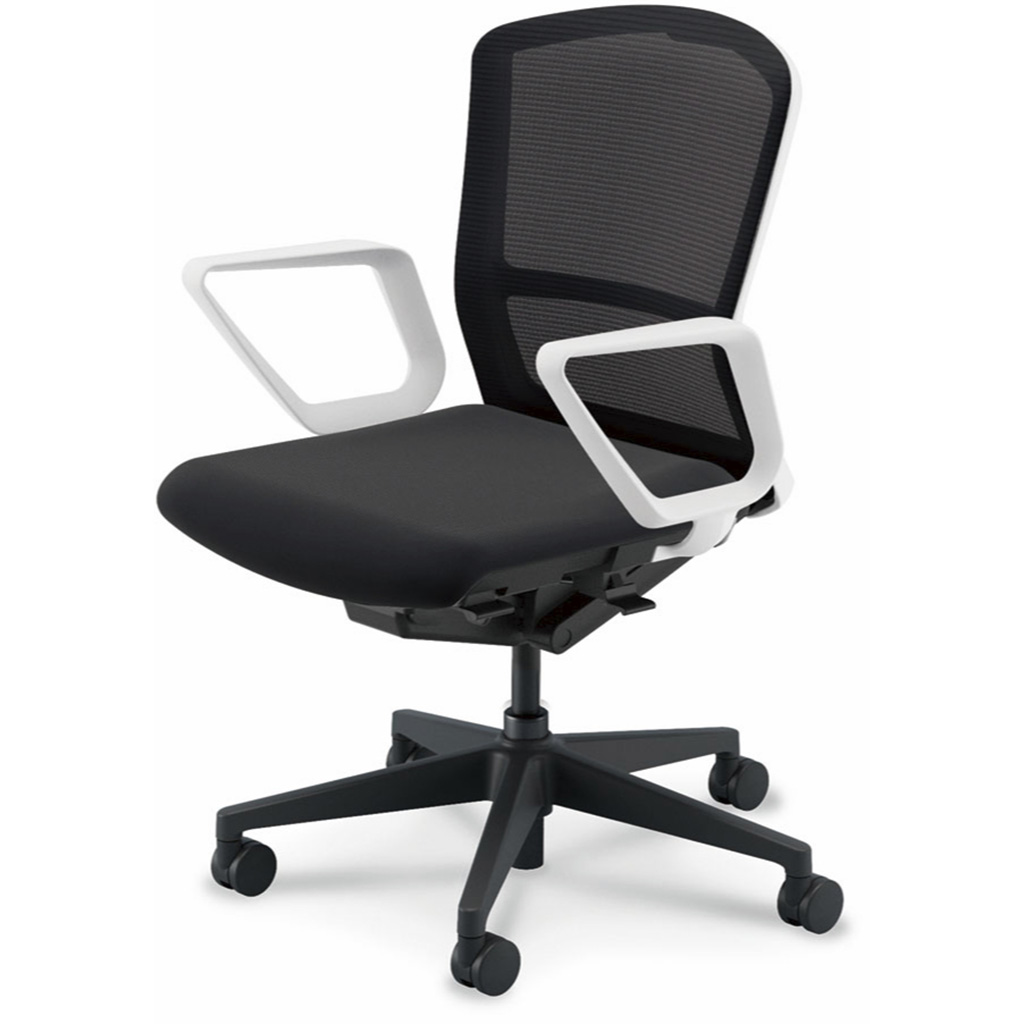 内田洋行/UCHIDA オフィスチェア Elfie(エルフィ) ミドルバック メッシュバック ホワイトフレームxブラック脚・リング肘・ナイロンキャスター EA-331M-WBRA-PA