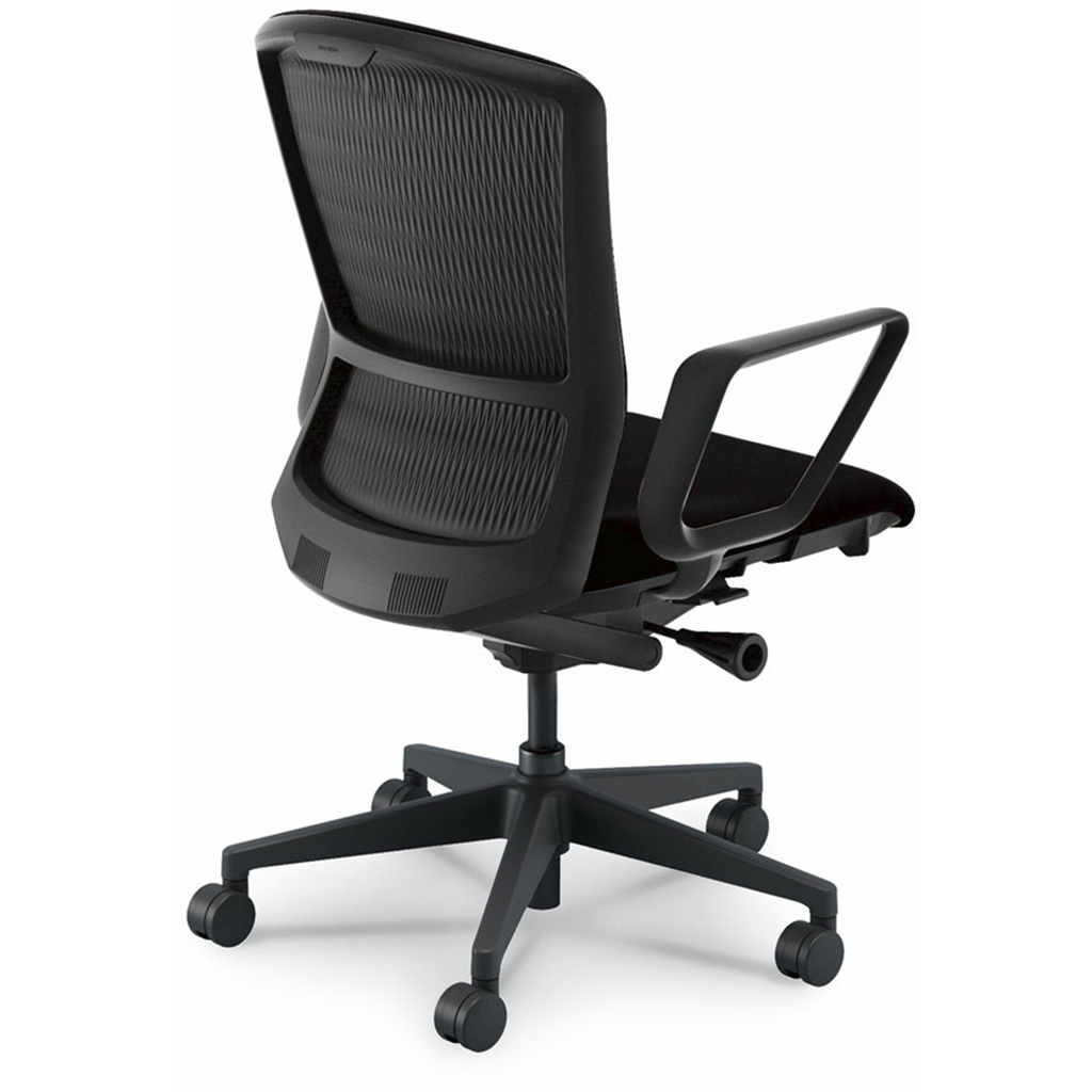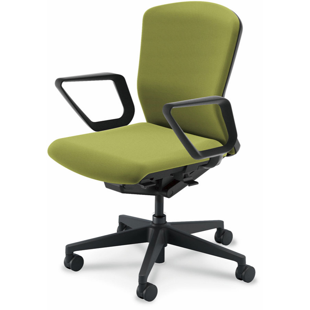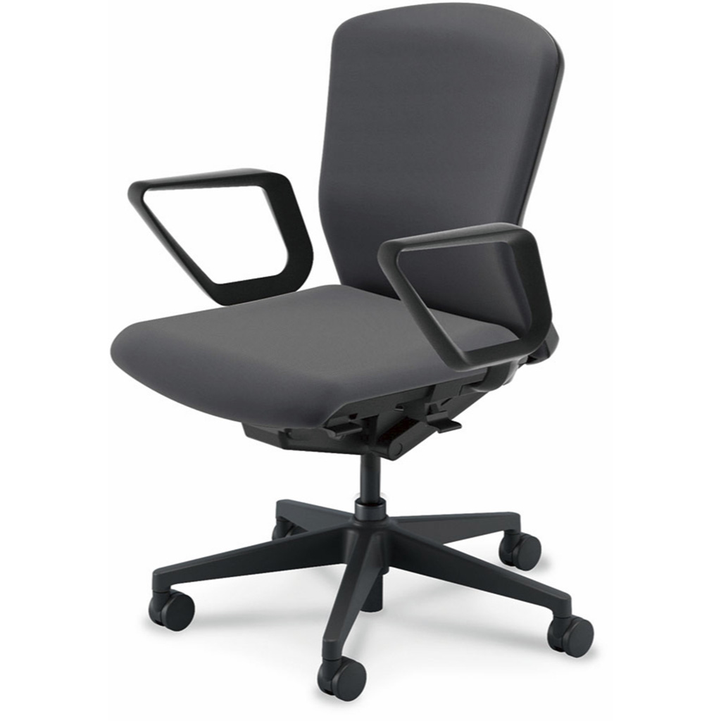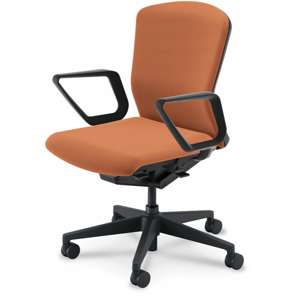 内田洋行/UCHIDA オフィスチェア Elfie(エルフィ) ミドルバック 樹脂カバーバック ブラックフレームxブラック脚・リング肘・ナイロンキャスター EA-331P-BBRA-PA