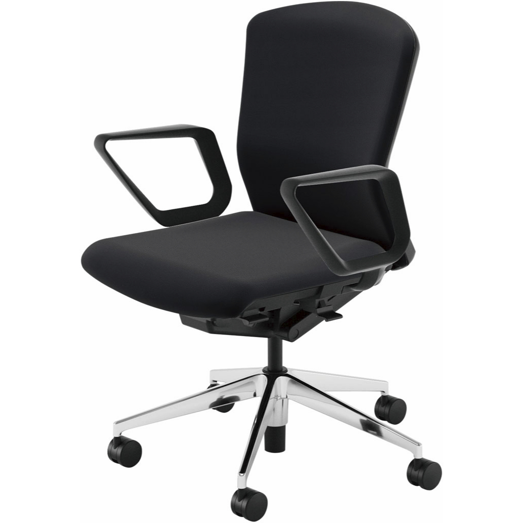 内田洋行/UCHIDA オフィスチェア Elfie(エルフィ) ミドルバック 樹脂カバーバック ブラックフレームxポリッシュ脚・リング肘・ナイロンキャスター EA-331P-BPRA-PA