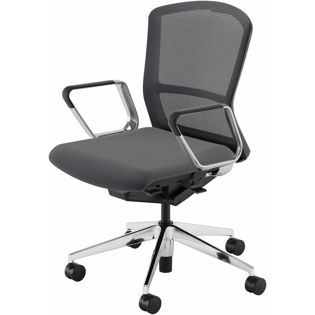 内田洋行/UCHIDA オフィスチェア Elfie(エルフィ) ミドルバック メッシュバック ブラックフレームxポリッシュ脚・アルミリング肘・ウレタンキャスター EA-361M-BPRP-PU