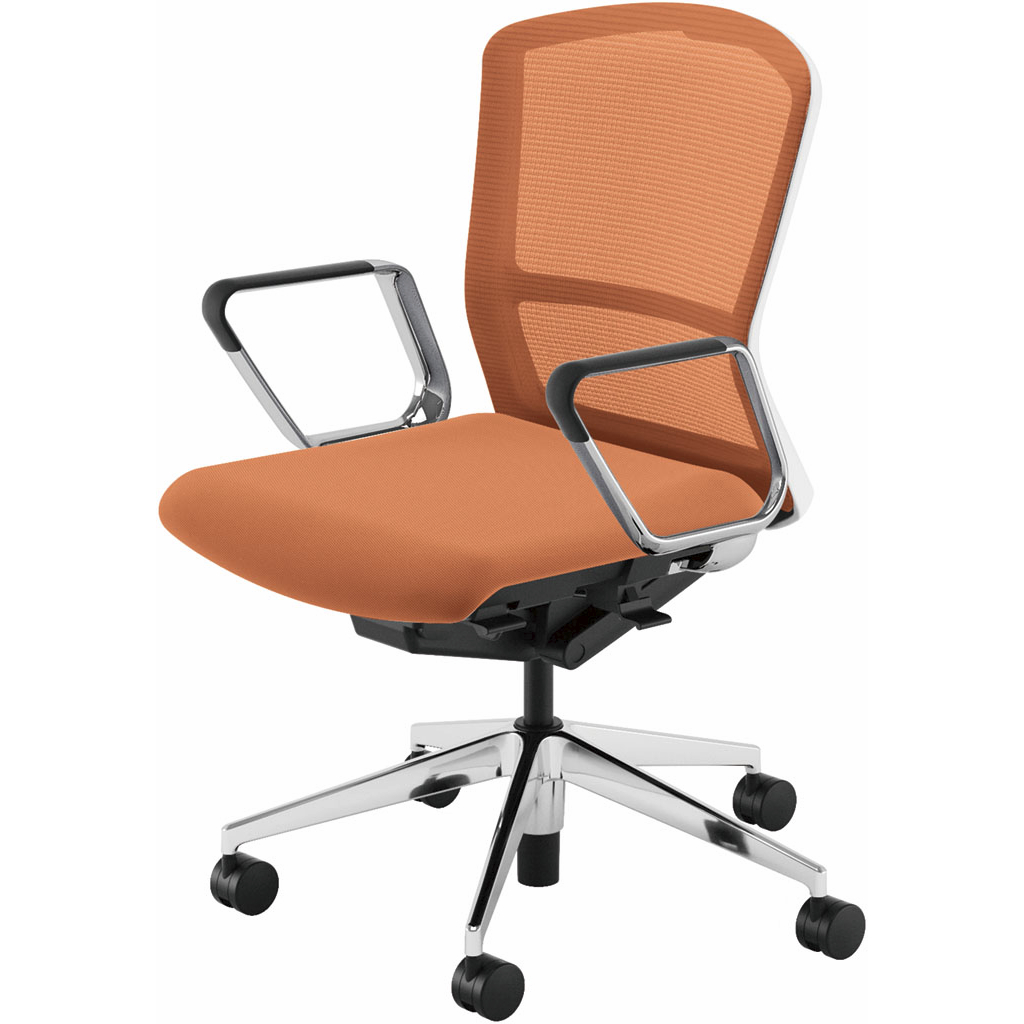 内田洋行/UCHIDA オフィスチェア Elfie(エルフィ) ミドルバック メッシュバック ホワイトフレームxポリッシュ脚・アルミリング肘・ウレタンキャスター EA-361M-WPRP-PU