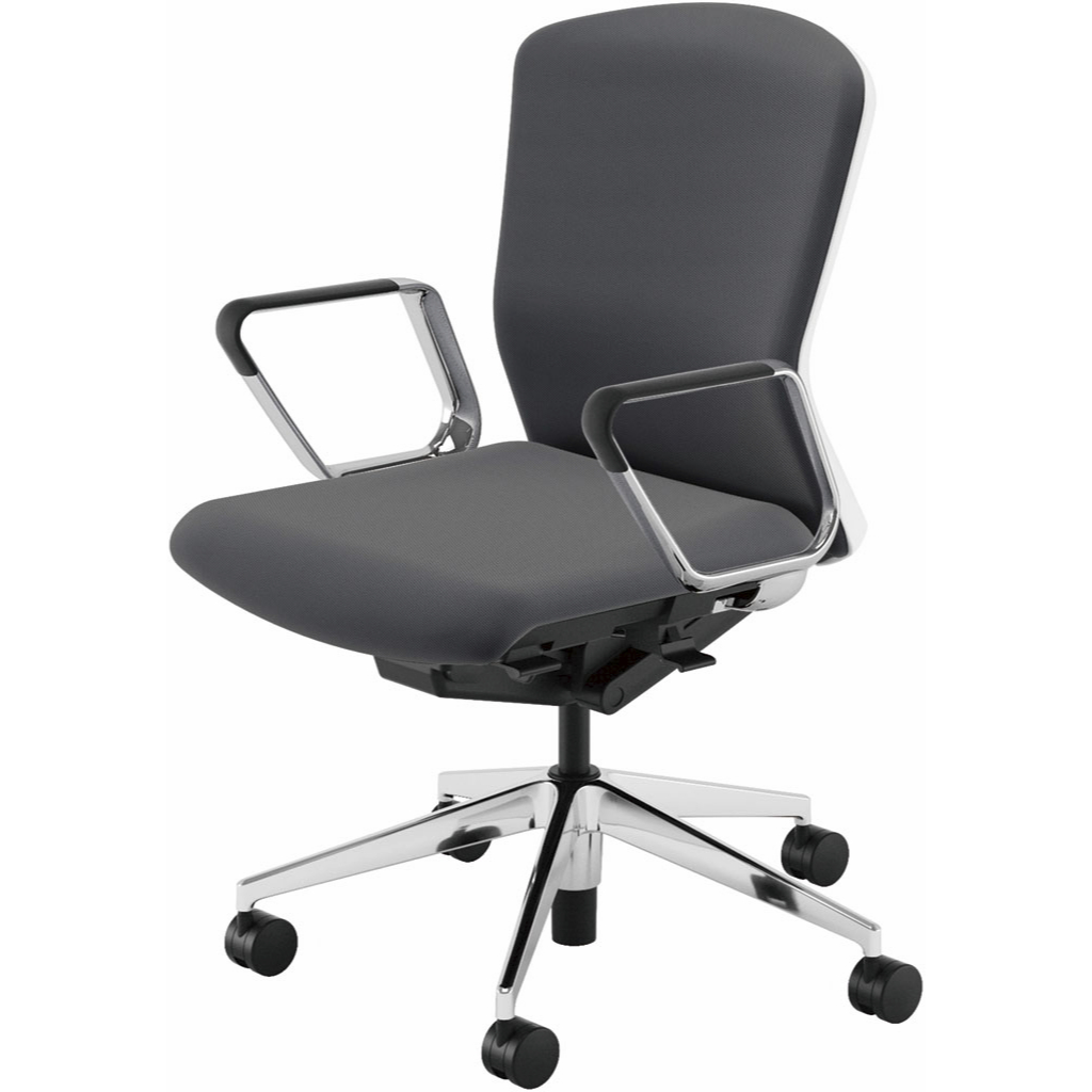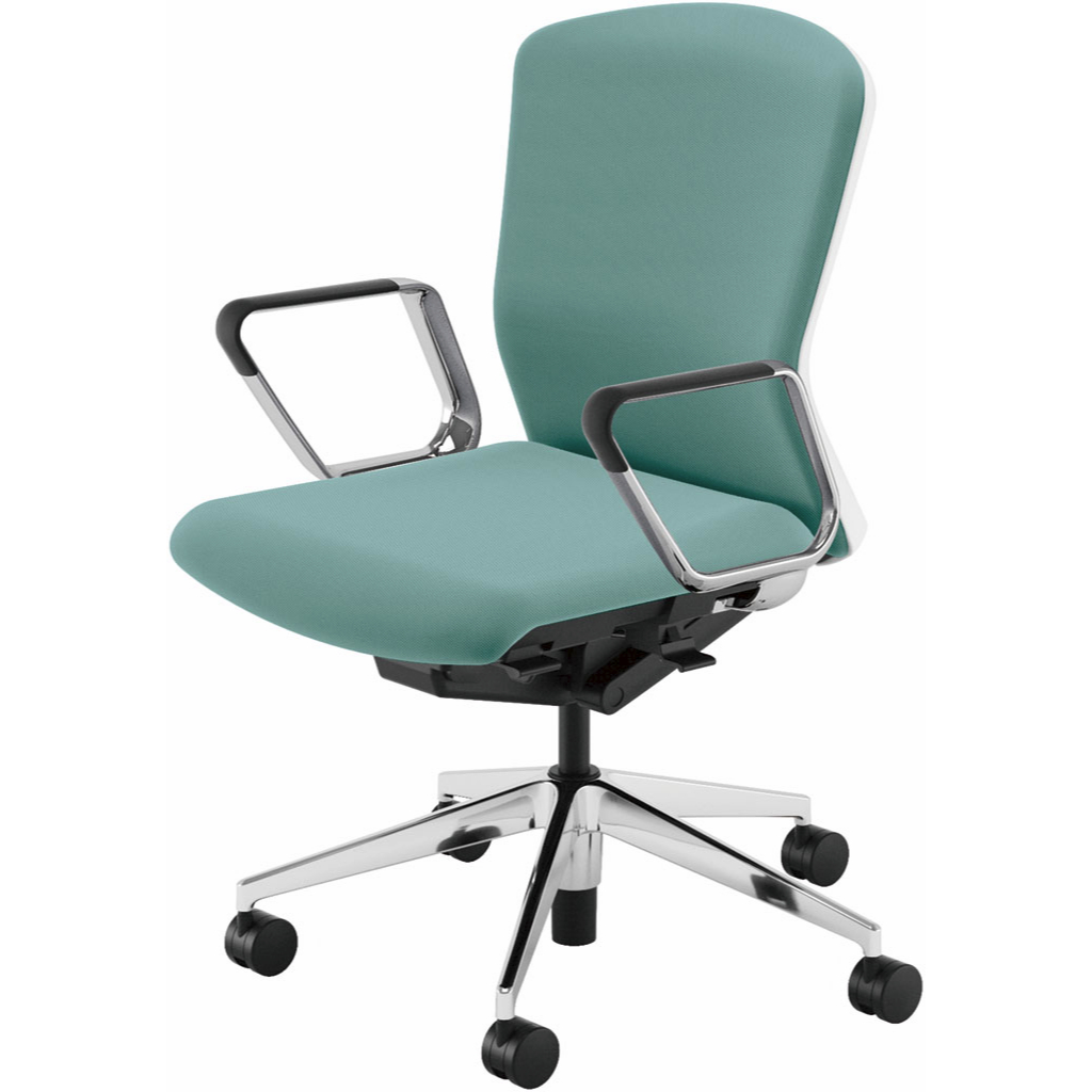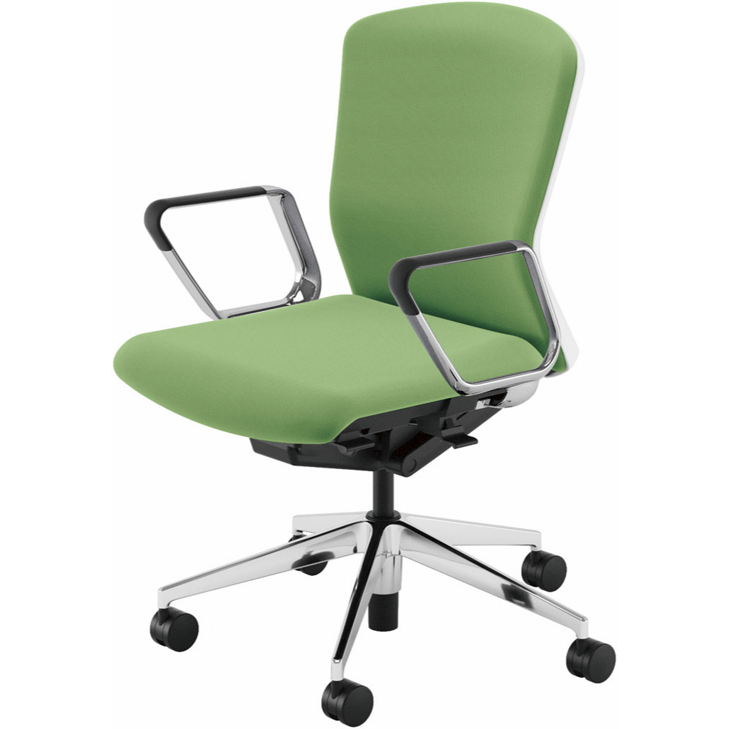 内田洋行/UCHIDA オフィスチェア Elfie(エルフィ) ミドルバック 樹脂カバーバック ホワイトフレームxポリッシュ脚・アルミリング肘・ウレタンキャスター EA-361P-WPRP-PU
