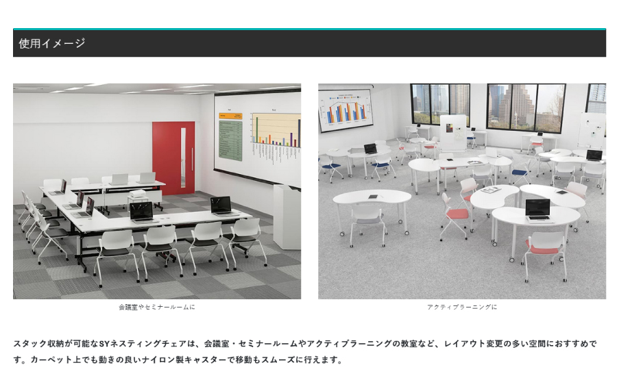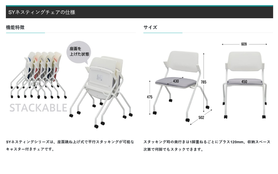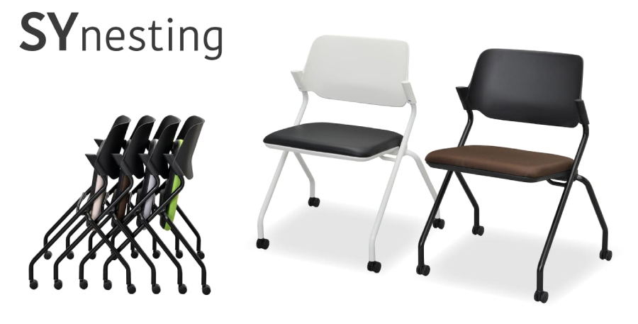 アール・エフ・ヤマカワ SYネスティングチェア ブラック 肘無シ ファブリック ラテベージュ RFC-SYBFLB