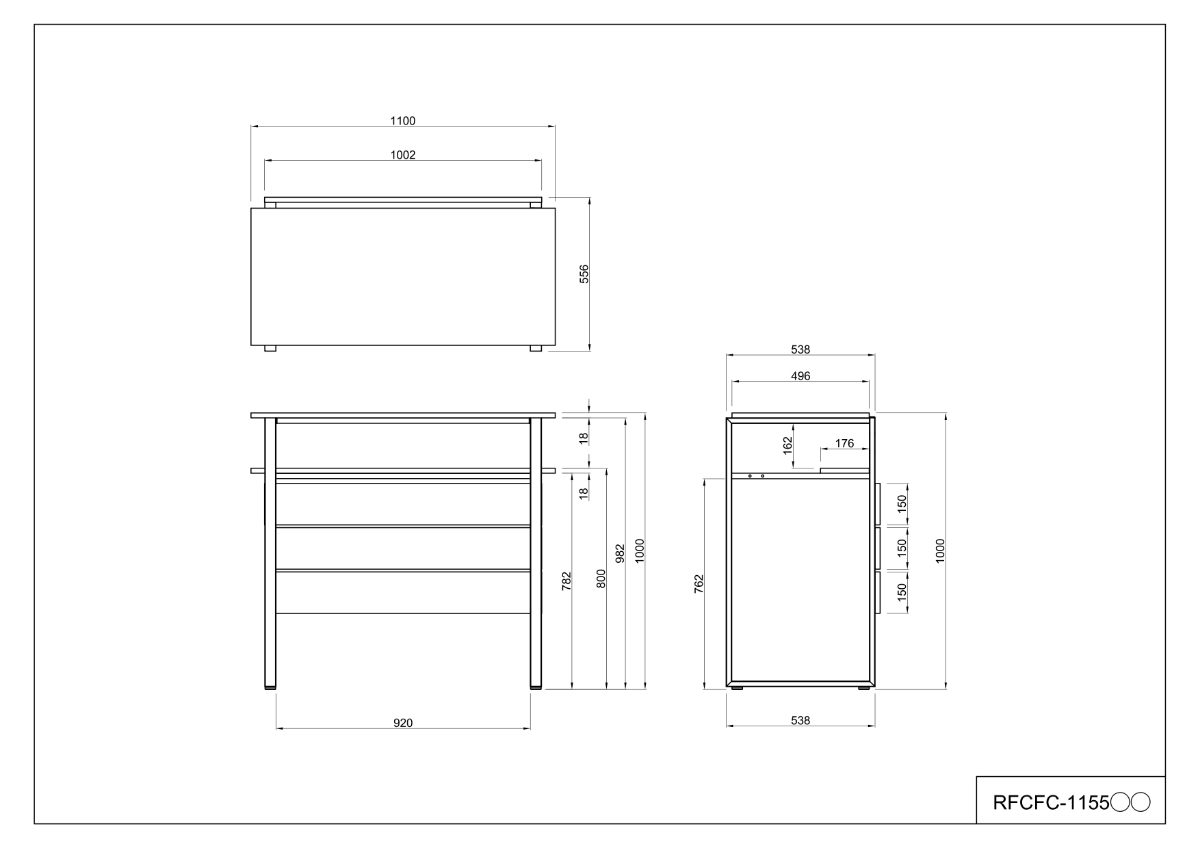 アール・エフ・ヤマカワ カフェステーション カウンター W1100×D556 ナチュラル RFCFC-1155NA