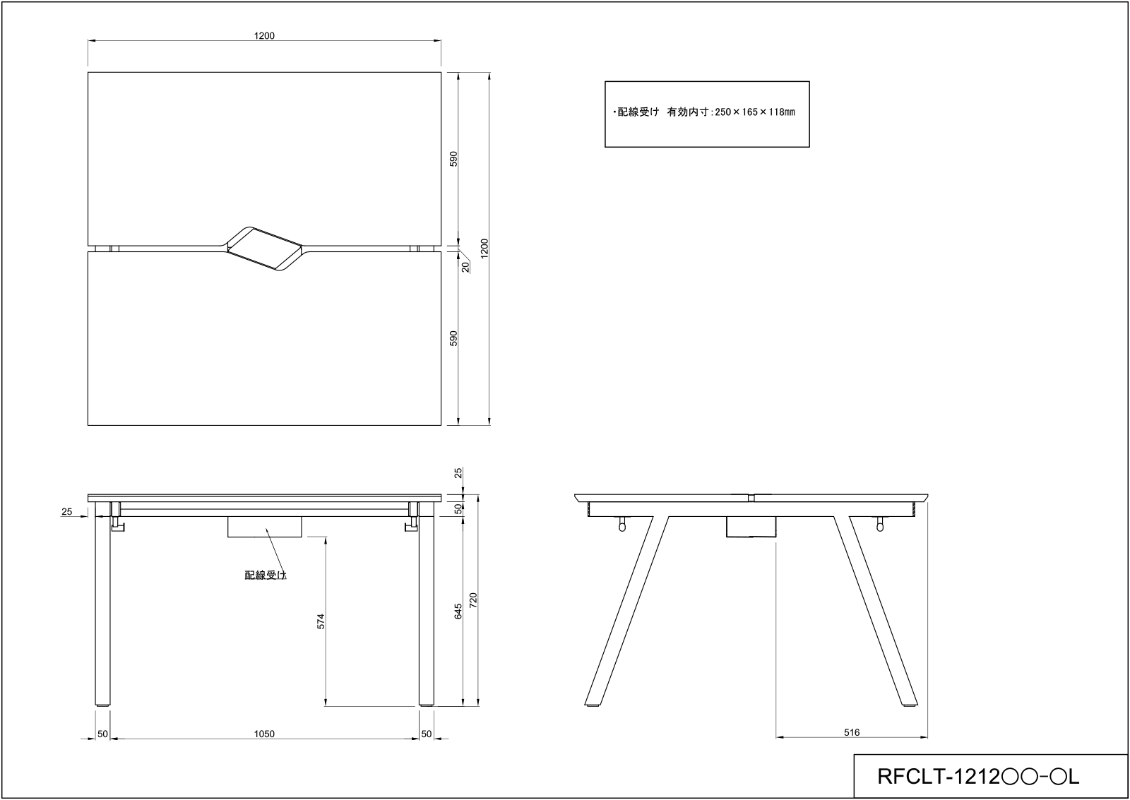 アール・エフ・ヤマカワ チルト フリーアドレス用テーブル W1200×D1200 ウォルナット×ブラック脚 RFCLT-1212DM-BL
