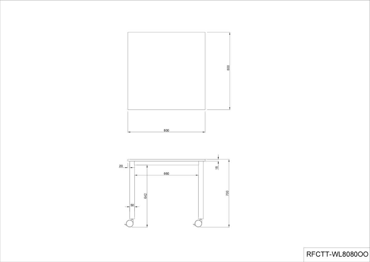 アール・エフ・ヤマカワ キャスターテーブル ホワイト脚 W800×D800 ナチュラル RFCTT-WL8080NA
