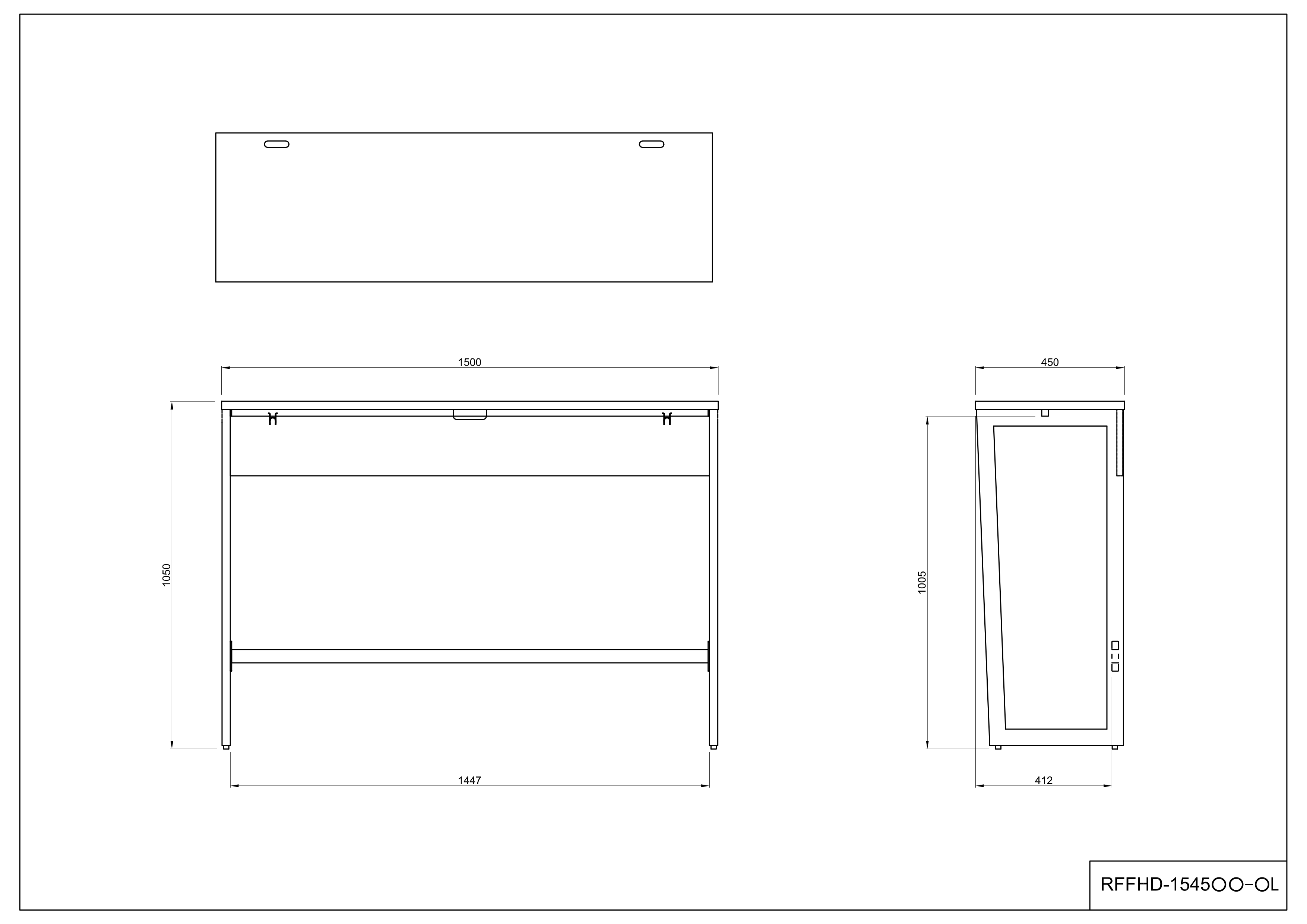 アール・エフ・ヤマカワ リスム ハイデスク W1500×D450 ウォルナット×ホワイト脚 (2ヶ口コンセント付) RFFHD-1545DM-WL