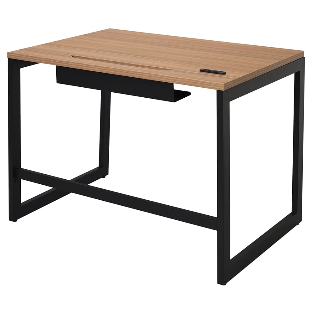 アール・エフ・ヤマカワ リスム デスク W1000×D700 ウォルナット×ブラック脚 (2ヶ口コンセント付) RFFLD-1070DM-BL