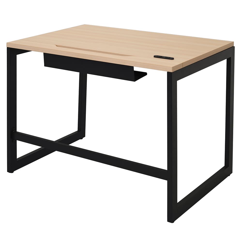 アール・エフ・ヤマカワ リスム デスク W1000×D700 ナチュラル×ブラック脚 (2ヶ口コンセント付) RFFLD-1070NA-BL