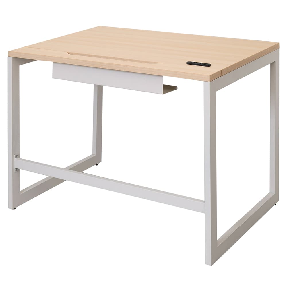 アール・エフ・ヤマカワ リスム デスク W1000×D700 ナチュラル×ホワイト脚 (2ヶ口コンセント付) RFFLD-1070NA-WL