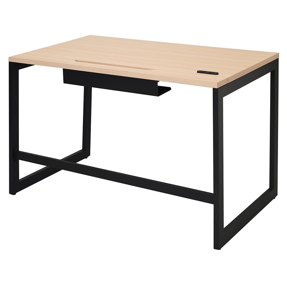 アール・エフ・ヤマカワ リスム デスク W1200×D700 ナチュラル×ブラック脚 (2ヶ口コンセント付) RFFLD-1270NA-BL