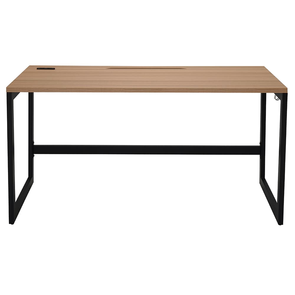 アール・エフ・ヤマカワ リスム デスク W1400×D700 ウォルナット×ブラック脚 (2ヶ口コンセント付) RFFLD-1470DM-BL