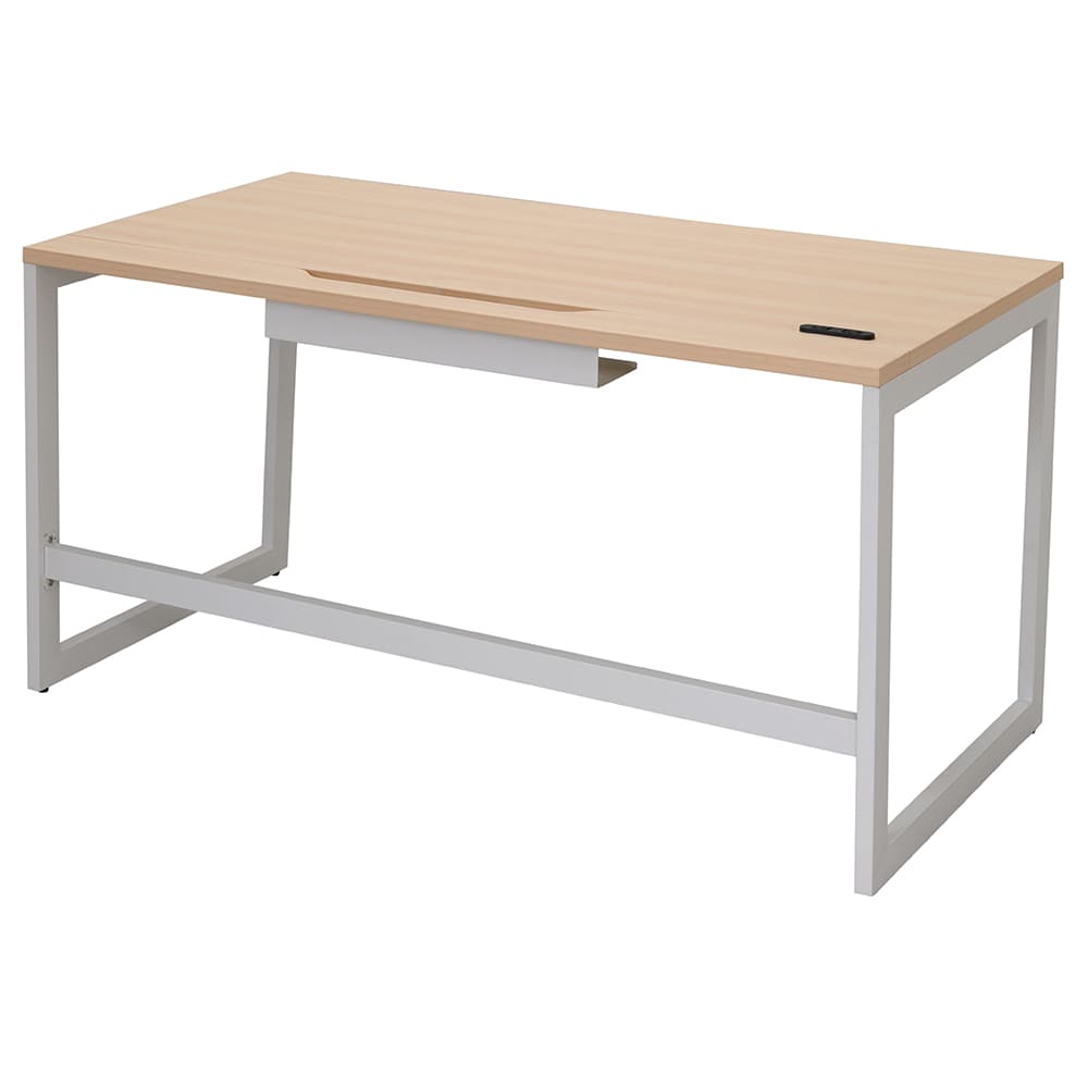 アール・エフ・ヤマカワ リスム デスク W1400×D700 ナチュラル×ホワイト脚 (2ヶ口コンセント付) RFFLD-1470NA-WL
