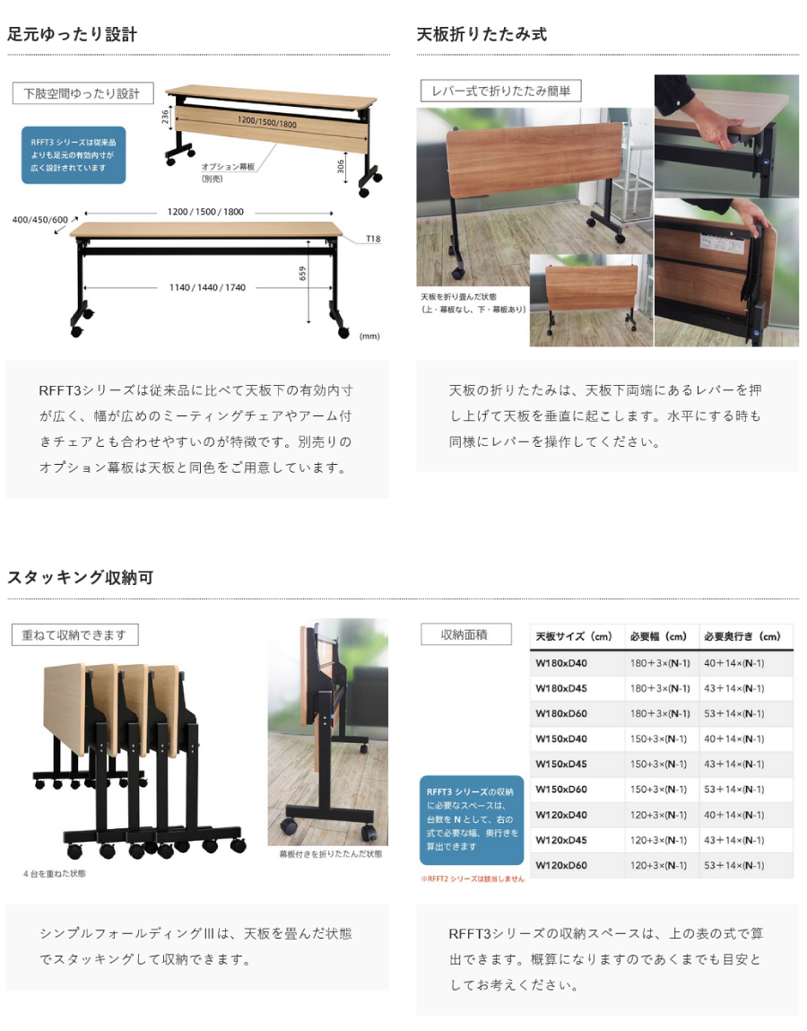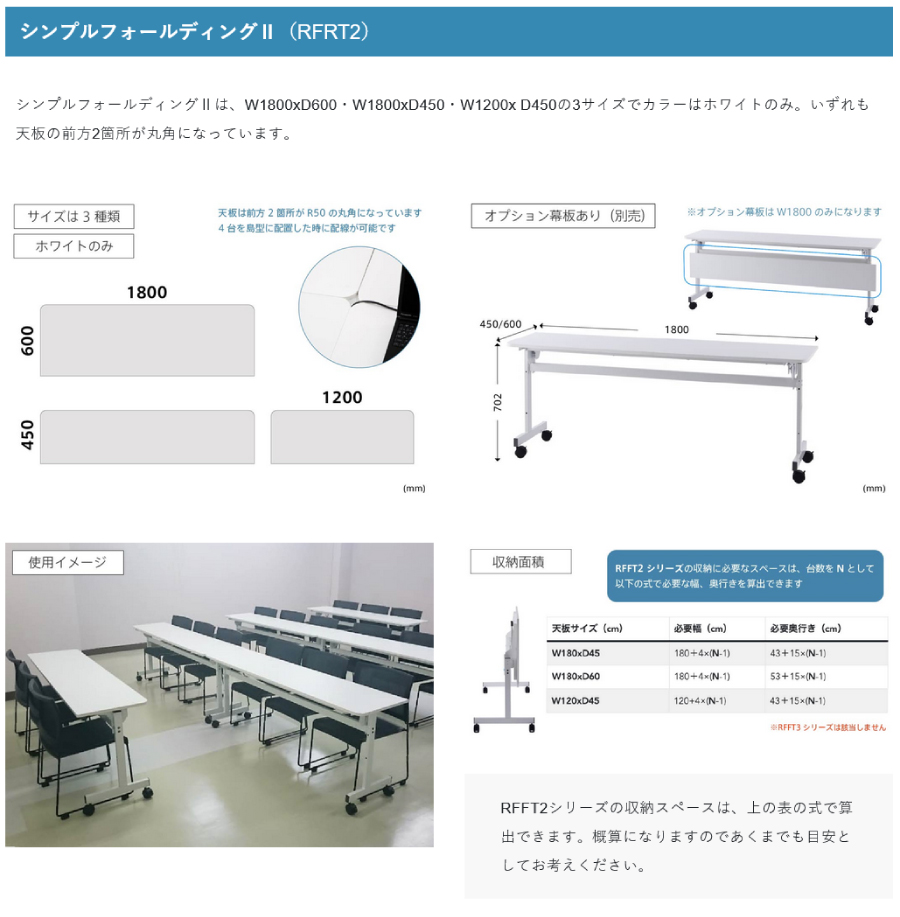 アール・エフ・ヤマカワ シンプルフォールディング テーブルIII W1500×D600 ホワイト RFFT3-1560WH
