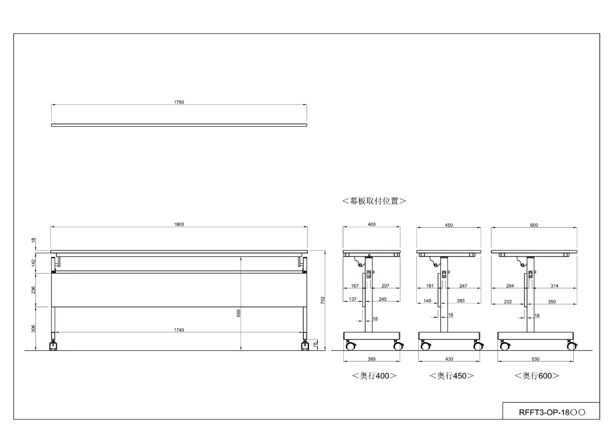 アール・エフ・ヤマカワ シンプルフォールディングテーブルIII 1800用 幕板 ホワイト RFFT3-OP-18WH