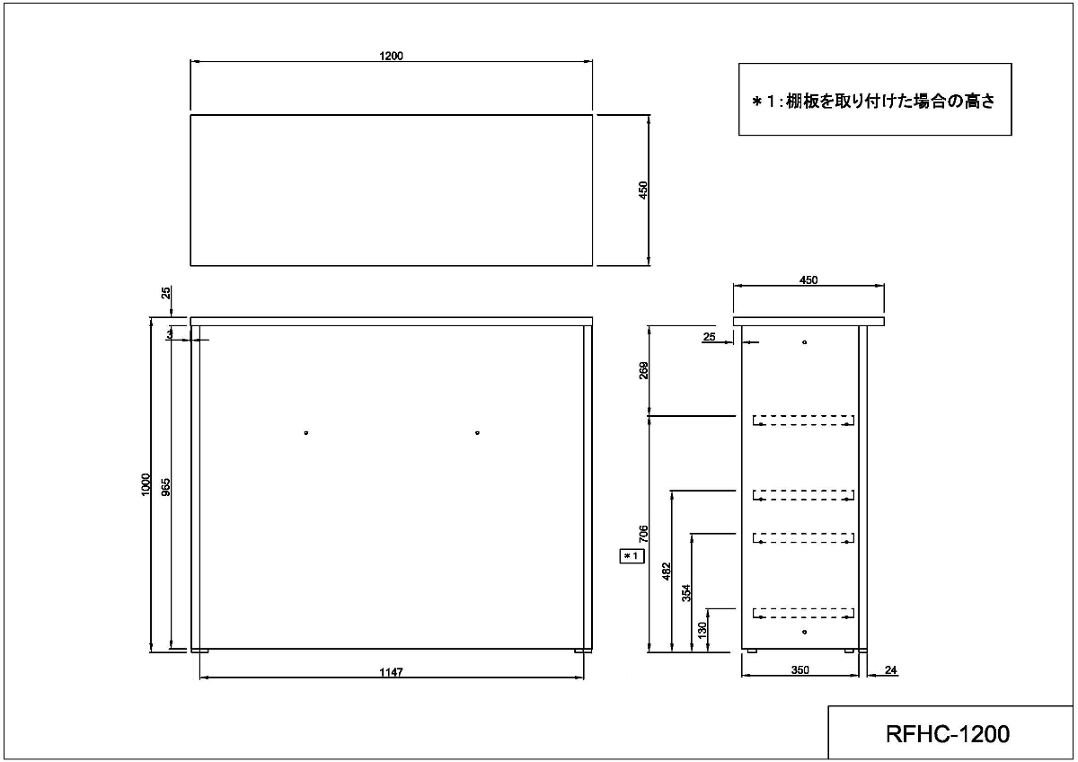 メーカー在庫限り アール・エフ・ヤマカワ ハイカウンター W1200×D450 DMJウォルナットII RFHC-1200DM2