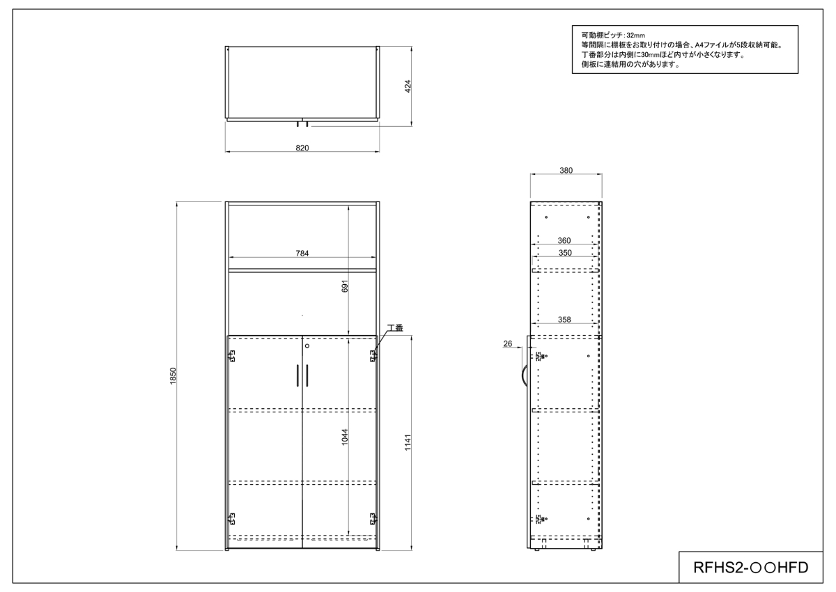 アール・エフ・ヤマカワ 可動棚ハイシェルフII 共通扉付 DMJウォルナットII RFHS2-DM2HFD