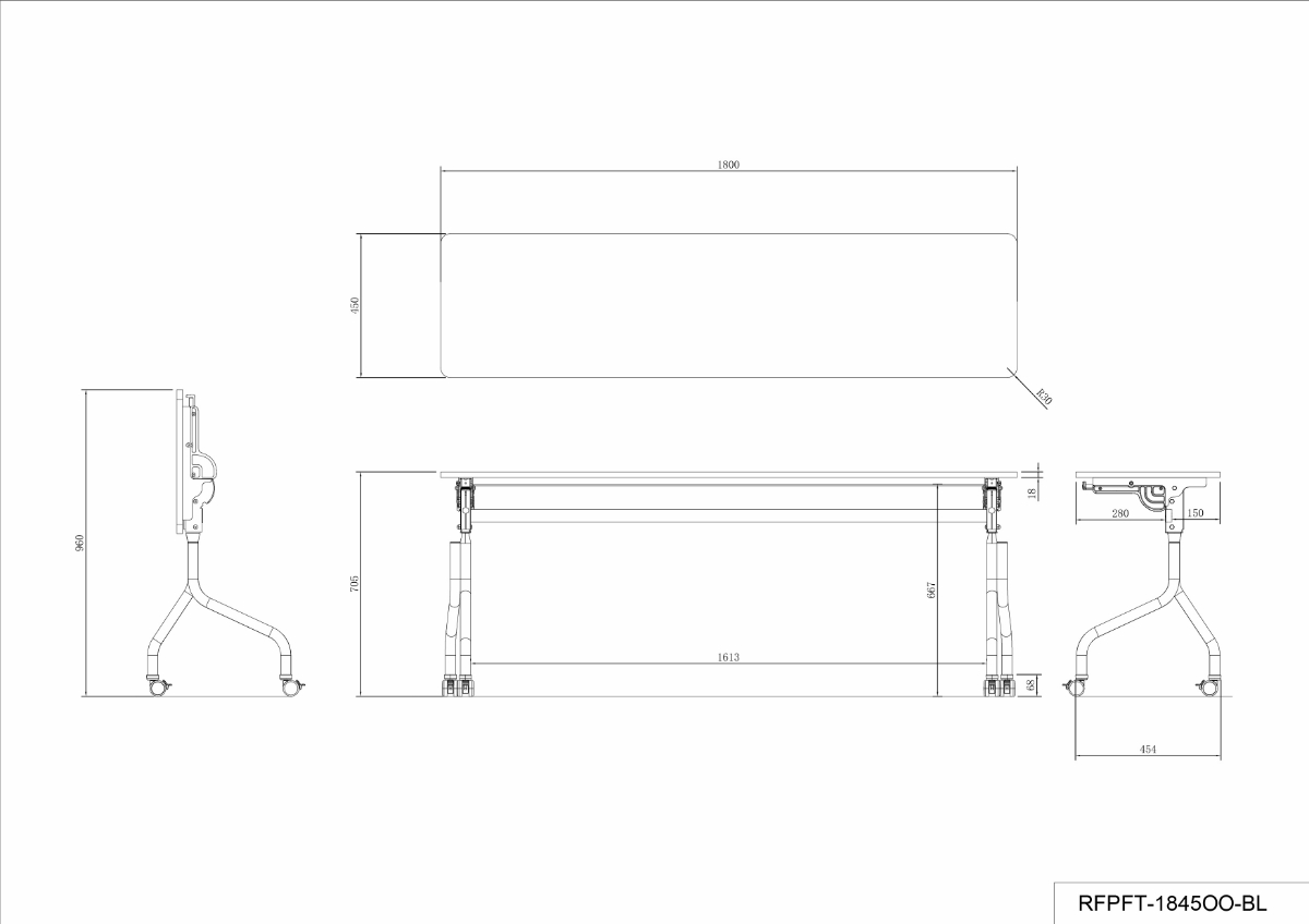 アール・エフ・ヤマカワ パラレル フォールディングテーブル W1800×D450 ナチュラル×ブラック脚 RFPFT-1845NA-BL